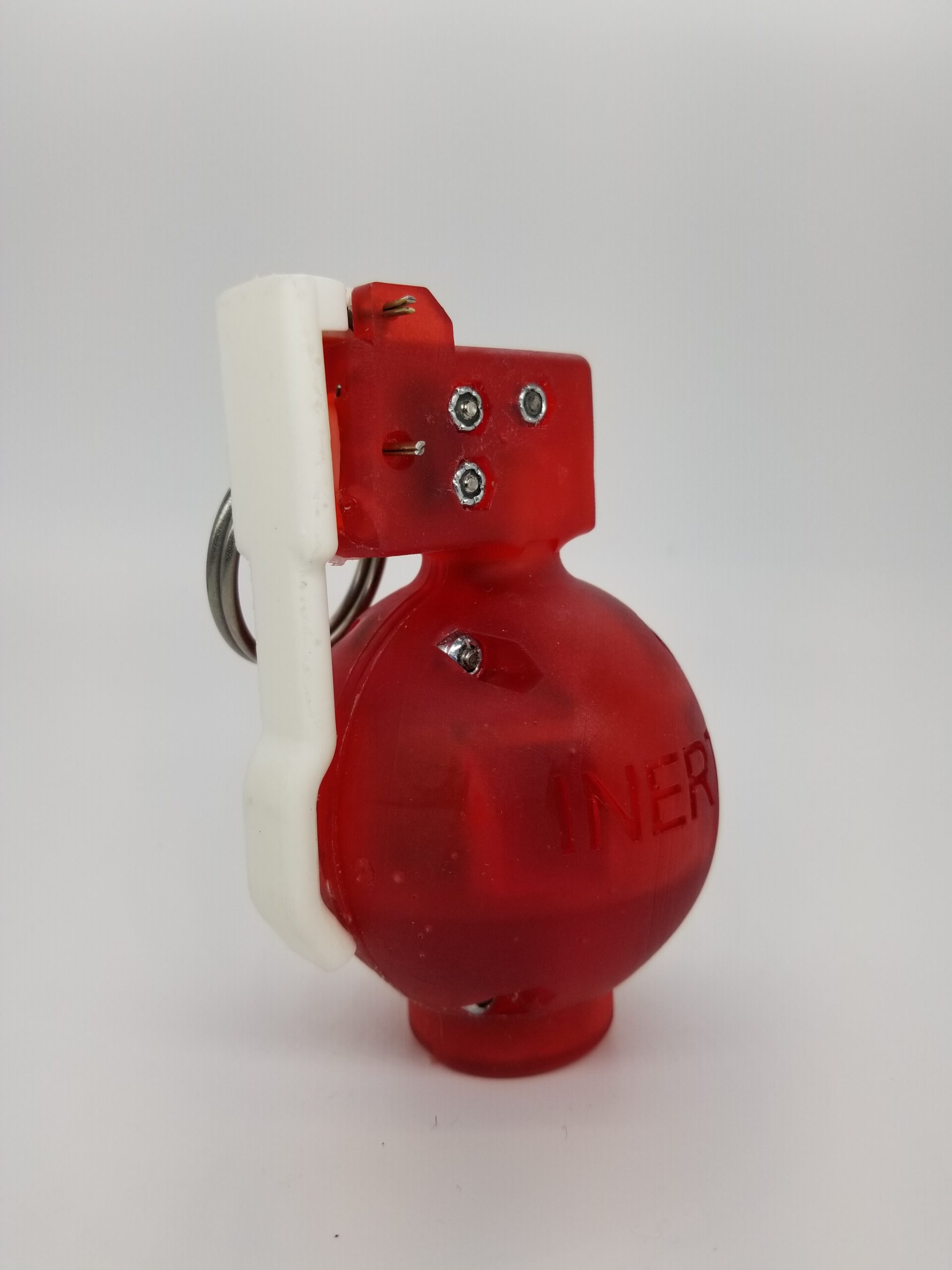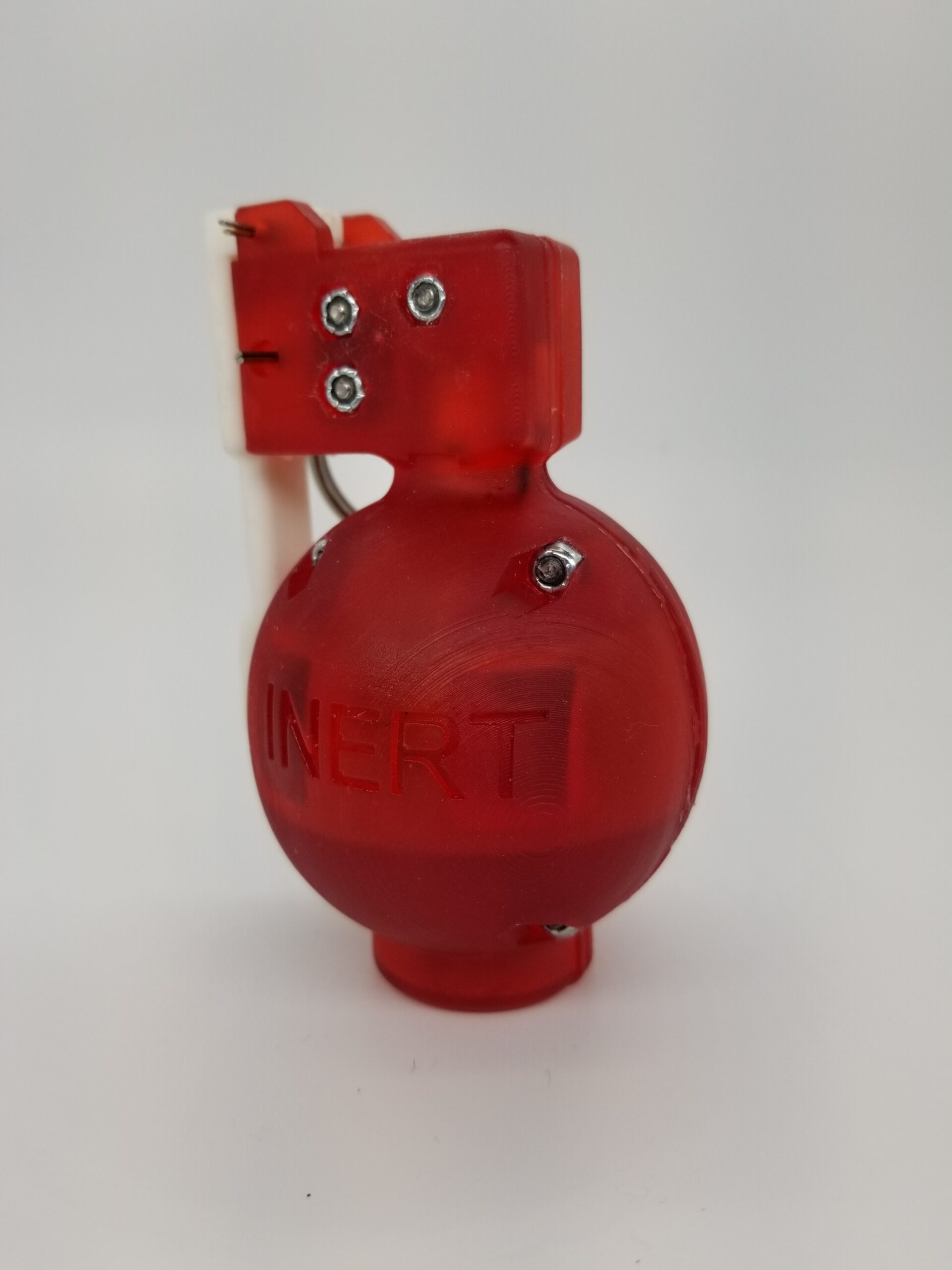 Visual and audible feedback provides non-kinetic grenade simulation via high-intensity LED strobe and powerful siren, powered by off-the-shelf, field-replaceable, A23 style battery.